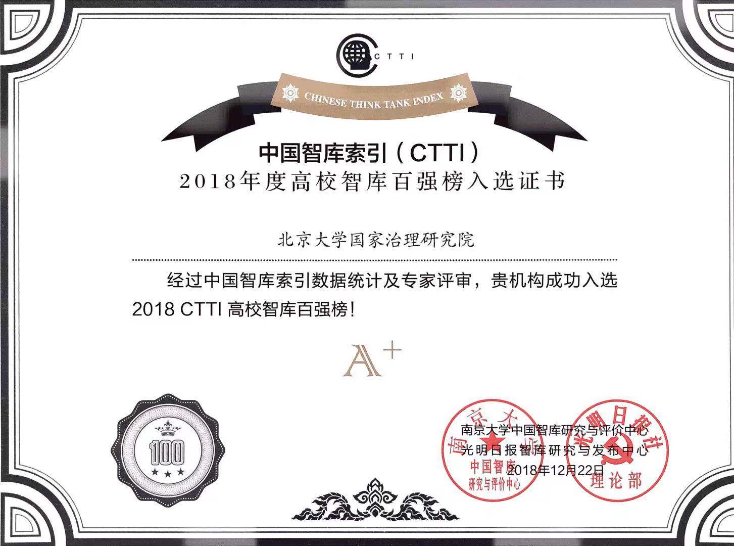 入选CTTI高校智库A+级榜单,是专业评估机构对北京大学国家治理研究院智库地位和成就的充分肯定。在庆祝改革开放四十周年之际,这一评估是对于研究院的巨大鼓舞。研究院将坚持以国家治理现代化为研究主题,为新时代中国特色社会主义国家治理现代化和世界一流学科的建设作出新的贡献。