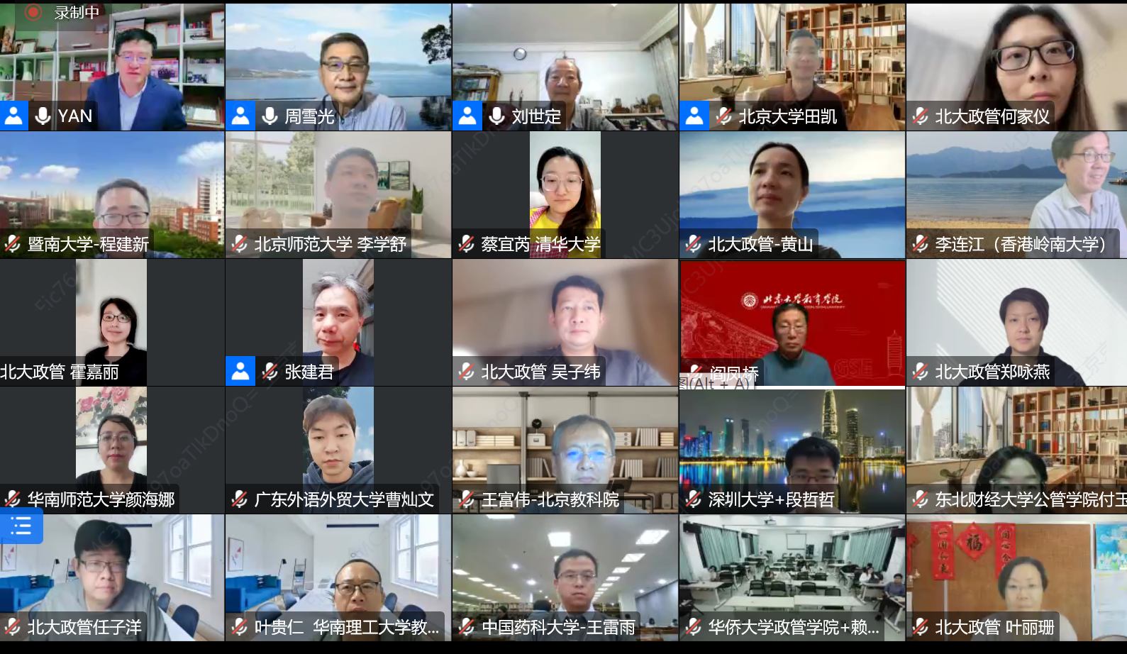 2022年11月16日、20日和21日,受北京大学高端学术讲学计划支持,斯坦福大学周雪光教授以《环境非连续性突变与危机应对:组织学的观察与思考》为题,举行了三次专题讲座,在校内外产生了广泛积极影响。 周雪光教授第一场讲座题为《组织决策的多重过程与危机应对》。讲座由北京大学国家治理研究院院长王浦劬教授主持,北京大学国家治理研究院副院长、政府管理学院副院长田凯教授担任评议人。 王浦劬教授(左)和田凯教授(右)分别担任主持人和评议人 周教授首先对美国新冠疫情初期的决策过程进行了考察。他详细分析了特朗普政府应对新冠疫情的时间轴,并运用詹姆斯·马奇提出的“垃圾箱”决策模型作为分析工具,解释了白宫决策的多重过程。他指出,政治过程、组织结构、注意力分配和决策时机等,都是关键性影响因素。白宫新冠疫情决策模式为多方参与的政治过程,这一模式通过逐渐固定的组织结构,达成统一的决策。在讨论注意力分配和决策时机时,周教授援引居家隔离令等重要事件和时间节点,强调了多重任务下注意力与时机对决策的影响。在此基础上,他进一步分析了美国疾病控制与预防中心(CDC)检测盒失败事件,认为公共卫生官员做出了误判、错过了早期控制时机。 周教授认为,“垃圾箱”决策模型是分析美国早期防疫失误的有效理论工具。组织决策过程中高度不确定性与环境的非连续性,使得意外事件对决策结果产生了重大影响,因此,如何进一步提升决策质量,值得学界和实务界深入思考。此外,公共卫生官员本应是降低决策过程不确定性的因素,但是,实践中却出现了判断失误,这种情况显示出组织学习与专业逻辑的局限性。 田凯教授对于周教授的讲座进行了点评。他指出,周雪光教授通过对美国早期防疫过程细致入微的敏锐观察,展示了如何在经验现象和理论知识之间建立起有机联系。一般来说,对于注意力的研究多从心理学视角进行,周教授的案例研究为我们提供了重视注意力分配的政治学视角。他的讲座显示,特朗普政府的经济发展目标、政府连任目标和防疫目标之间存在冲突,由此妨碍了特朗普政府的客观决策。当前,组织学发展呈现细节化趋势,对重大现实问题的解释力时有不足。周教授的研究提示我们,组织学同样是解释重大现实问题的有力工具,这就为组织学的发展提供了有益的思考。 王浦劬教授总结指出,周雪光教授从组织学角度,以美国早期疫情防控为样本,进行了经验性观察与理论性分析,为人们思考和分析组织决策、组织与环境关系带来了很大启发。 第一讲与会者合影(部分)