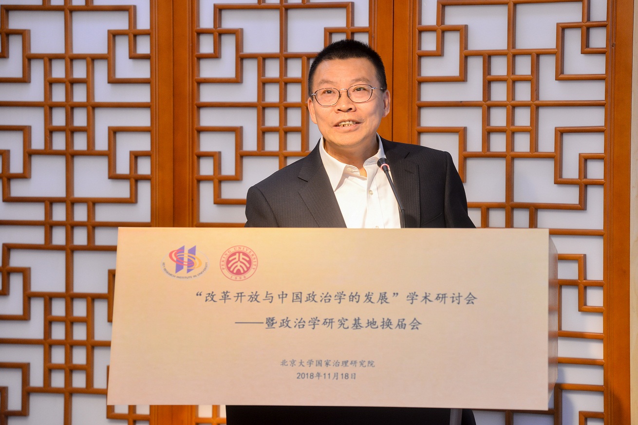 11月18日,由教育部社会科学委员会政治学部主办,北京大学国家治理研究院承办的“‘改革开放与中国政治学的发展’学术研讨会暨政治学研究基地换届会”在北京大学成功举行。来自北京大学、清华大学、浙江大学、吉林大学、中国社会科学院、中央党校(国家行政学院)、华中科技大学、美国哥伦比亚大学等国内外其他院校和科研机构的四十余位领导和学者出席了本次会议。