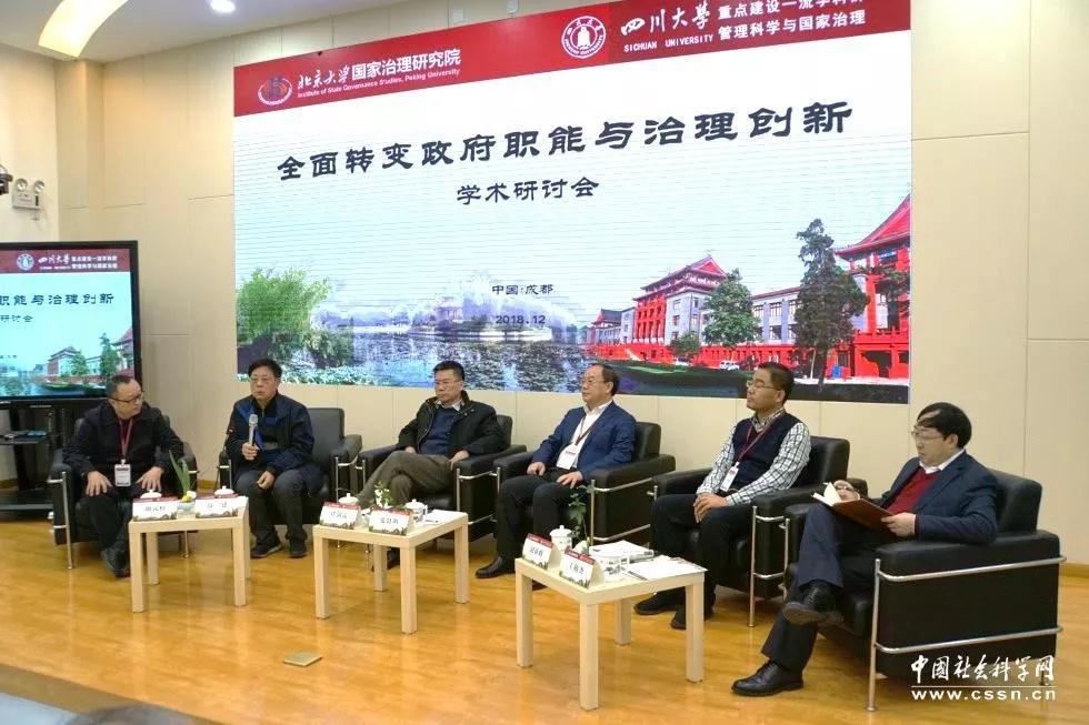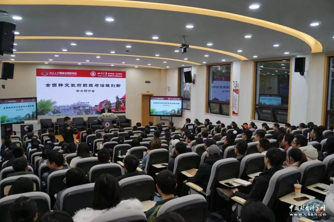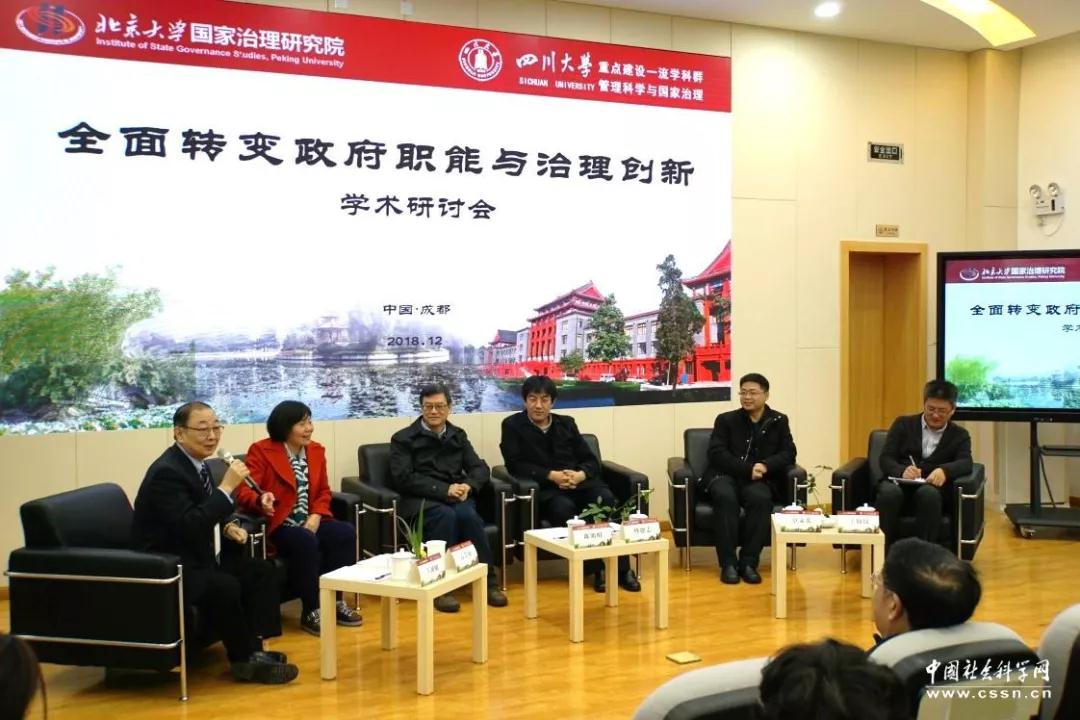2018年12月7日,由北京大学国家治理研究院和四川大学重点建设学科群“管理科学与国家治理”公共管理一流学科建设平台联合举办的“全面转变政府职能与治理创新”学术研讨会在四川大学成功举办。来自北京大学、清华大学、复旦大学、南京大学、中山大学、吉林大学、北京师范大学、天津师范大学、首都师范大学、华中师范大学、西华大学、四川大学等高校以及《新华文摘》、《政治学研究》、《上海行政学院学报》、《行政论坛》、《社会科学研究》、《四川大学学报》(哲学社会科学版)等期刊的20余位知名专家学者,围绕“全面转变政府职能与治理创新”主题开展深入研讨。四川大学一流学科建设“管理科学与国家治理”学科群公共管理一流学科建设平台的相关专家及公共管理学院200余名师生一同与会。