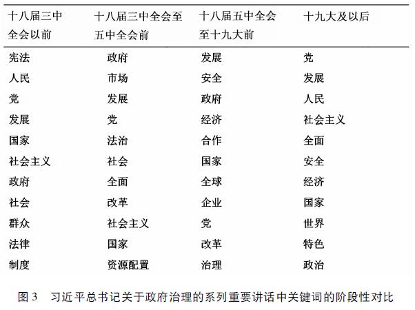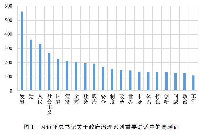 关键词:政府治理现代化;习近平总书记系列重要讲话;文本分析;战略要义 党的十八大以来,习近平总书记发表了一系列关于政府治理的重要讲话,为我国推进政府治理现代化提供了思想指导和价值引领。 本文根据习近平总书记系列讲话的文本,认真学习其关于政府治理现代化的经典论述,把握其深刻要义和宏观战略。为此,笔者选取2012年11月30日至2017年12月8日之间习近平总书记关于政府治理现代化的系列重要讲话文稿,运用文本分析技术,对关键词进行词频统计和计量分析,力图揭示我国政府治理现代化的战略要义。 为避免文本量化分析失准失焦,笔者遵循文本分析规范,先由两人对文稿进行识别,再对比两人的识别结果,针对不一致的情况进行第三人编码,由此确定选入的分析对象。笔者使用词云、高频词分类统计、语义网络等文本分析工具,按照词频统计规则,区分高频词,并采用可视化方法,呈现关键词汇的变化。 本文首先对习近平总书记关于政府治理现代化的系列重要讲话文稿进行中文分词和数据清理,即从文稿中提炼出实词(如名词等) 与短语,删去无关词(如“坚持” “实现” 等)、标点符号、数字等信息,最后统计出与政府治理现代化相关的高频词,提炼政府治理现代化的核心概念及其基本内涵。 图1中列举出习近平总书记最经常提及的20个词语。不难发现,使用频次最高的词语是“发展”,其次为“党” “人民” “社会主义”“国家”“经济” “全面” “社会” “政府” 等,以及“安全” “制度”“改革”“世界”“市场”等。这些词语显示,在总书记看来,政府治理现代化涉及国家的政治、经济、社会等各个领域,政府治理现代化的措施包括“改革” “创新” 等,政府治理现代化的重要依托是“市场”“制度”等。 词云是一种按照文本中的关键词的词频高低,以字号大小或色彩分别表现的图形化文本分析工具。词云分布图中,字号大小与其词频成 正比。 如图2显示,除了上文提及高频词外,习近平总书记还特别关注“企业”“治理” “法治” “宪法” “文化” 等。这表明,在政府治理现代化过程中,习近平总书记特别重视“企业”与政府协同治理的机制和作用,强调宪法和法律的规范作用,把法治作为政府治理的基本方式,重视以文化发展助力政府治理现代化进程。需要指出的是,在屏蔽“政府治理现代化”整体用词后,“治理”一词出现的频率仍然排在将近30名,足见习近平总书记对治理理念的重视。 词云分布图还表明,习近平总书记在论述政府治理现代化时,尤为关注以下几个重点议题,例如市场配置资源、建设社会主义市场经济、维护国家总体安全、促进互联网发展与创新互联网治理等。对比分析高频词分布图和词云分布图,笔者进一步发现习近平总书记关于我国政府治理现代化的战略设计: 第一,政府治理现代化,必须坚持中国共产党领导、坚持中国特色社会主义道路。政府治理体系是中国共产党领导现代化建设,推进经济社会发展的治权体系,也是实现国家治理的执行机制。近代以来,我国社会主义革命、建设和改革的成果实践表明,党的全面领导,是人民群众战胜风险挑战、不断夺取胜利,实现中华民族伟大复兴的关键。因此,政府治理现代化也必须坚持党总揽全局、协调各方的作用,充分发挥中国共产党作为中国特色社会主义事业领导核心的作用。同时,必须遵循社会主义初级阶段这个最大国情予以规划和设计,坚持社会主义发展方向和时代要求,确定政府治理现代化的任务和要求。 第二,政府治理现代化必须坚持以人民为中心的发展理念。政府治理现代化是以习近平同志为核心的党中央基于我国当前国情的战略设计,最重要的依据是我国的社会主要矛盾和人民群众的切实需求。党的十九大报告直接提及“人民”的次数就高达203次,报告指出: “我国社会主要矛盾已经转化为人民日益增长的美好生活需要和不平衡不充分的发展之间的矛盾”。政府治理现代化的途径与目标必须取向于满足人民群众多样化、多层次、多方面的特点,必须认识到“人民是历史的创造者,是决定党和国家前途命运的根本力量”。可见,政府治理现代化的根本动力在于人民群众的积极参与,必须充分发挥人民群众首创精神,必须最大限度激发其参与社会主义政治建设的巨大热情。 第三,政府治理现代化必须处理好政府与市场、社会的关系。政府调控是市场经济的“有形之手”,政府职能转变的目标是让市场在政府调控中更好地发挥资源配置的作用。此外,政府作为社会管理主体,在党委领导、政府负责、社会协同、公众参与和法治保障的体系下,对于社会公共事务进行管理。然而,发挥政府作用并不意味着包办市场和社会,必须合理明晰政府的职权边界,减少政府对于市场运行和社会运行微观领域的干预,加强对于市场的服务和监管,加强社会领域的公共服务,积极培育和引导社会组织的发育。 第四,政府治理现代化必须以经济发展为基础和前提。按照历史唯物主义,经济基础决定上层建筑,因此,经济发展相对于政府治理现代化具有基础地位。从现实政治而言,市场经济发展,使得社会呈现多样性,不断涌现新问题、新现象,此外,互联网经济、共享经济等新兴事物的出现,也对政府提升化解矛盾、供给制度、有效治理、公共服务、市场监管等能力提出了新要