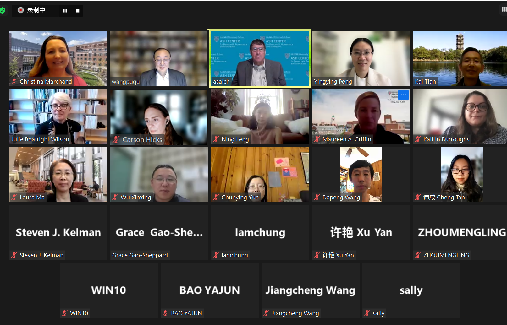 2021年10月22日,由北京大学国家治理研究院与哈佛大学肯尼迪政府学院阿什研究中心联合举办的“政府创新与高效能治理”国际学术研讨会在线上举行。来自北京大学、哈佛大学等多所高校的30余位专家学者参加此次会议。因双方的时区差异,本次研讨会分为两个时间段举行,北京时间上午8:00-10:00和晚上20:00-22:00。会议由哈佛大学肯尼迪政府学院阿什研究中心主任托尼·赛奇(Anthony Saich)教授和北京大学国家治理研究院院长王浦劬教授分别致开幕辞。