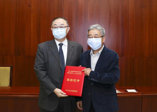 王浦劬教授在主会场接受陈宝生颁发证书
