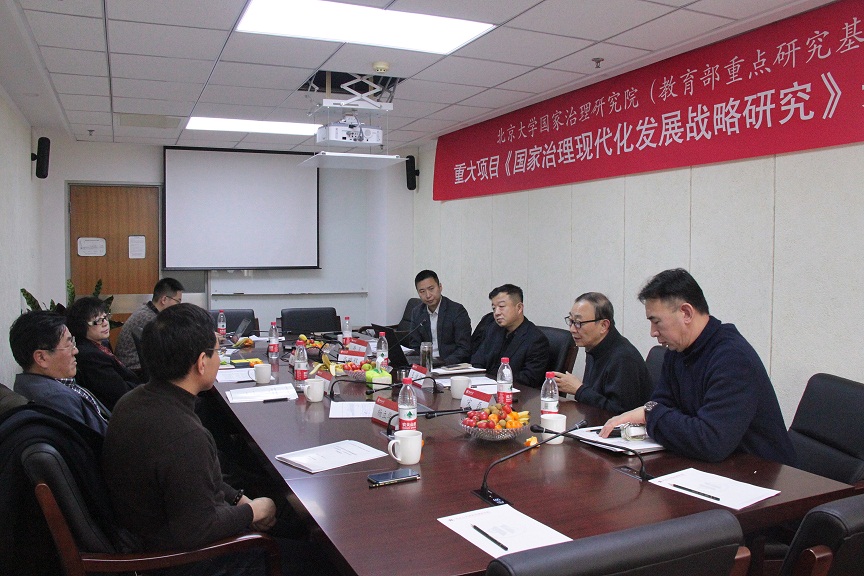 2017年12月27日上午,由教育部人文社会科学重点研究基地——北京大学国家治理研究院承担的重大项目“国家治理现代化发展战略研究”开题报告会在北京大学廖凯原楼319举行。