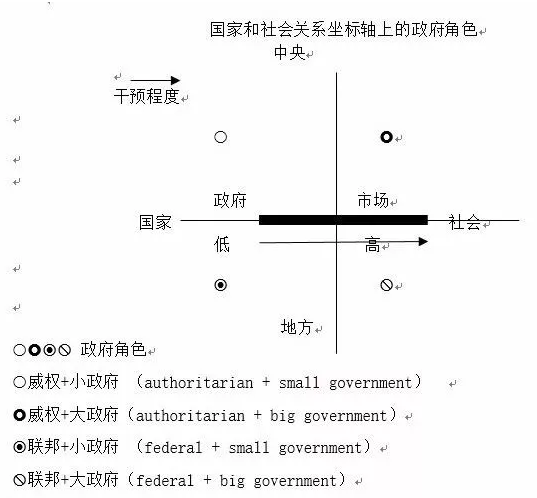 我们可以通过政治结构的坐标轴来理解四种政府角色类型,其位置的变化可以反映福利国家改革的变迁,福利国家之间的差异有哪些?