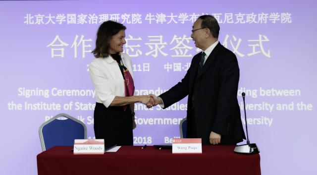王浦劬教授代表听众对Ngaire Woods教授的精彩讲演表示热忱感谢。最后,王浦劬教授与Ngaire Woods教授分别代表北京大学国家治理研究院和牛津大学布拉瓦尼克政府学院签署了合作备忘录协议。双方将在国家治理和政策制定领域加强合作,进一步推进国家治理现代化研究的一流学术发展。