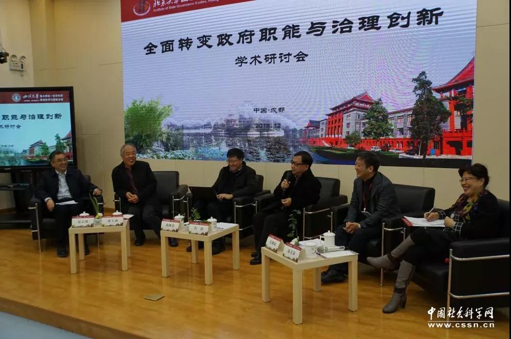 2018年12月7日,由北京大学国家治理研究院和四川大学重点建设学科群“管理科学与国家治理”公共管理一流学科建设平台联合举办的“全面转变政府职能与治理创新”学术研讨会在四川大学成功举办。来自北京大学、清华大学、复旦大学、南京大学、中山大学、吉林大学、北京师范大学、天津师范大学、首都师范大学、华中师范大学、西华大学、四川大学等高校以及《新华文摘》、《政治学研究》、《上海行政学院学报》、《行政论坛》、《社会科学研究》、《四川大学学报》(哲学社会科学版)等期刊的20余位知名专家学者,围绕“全面转变政府职能与治理创新”主题开展深入研讨。四川大学一流学科建设“管理科学与国家治理”学科群公共管理一流学科建设平台的相关专家及公共管理学院200余名师生一同与会。