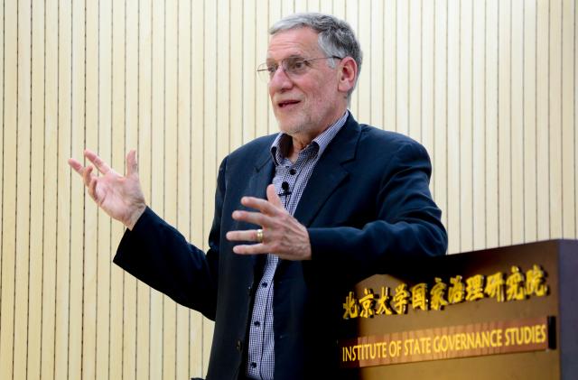 2019年3月15日下午,米格代尔教授北京大学高端学术讲学计划暨国家治理论坛第三讲在廖凯原楼341会议室举行,主题为“边界与归属(Boundaries and Belonging)”。华盛顿大学政治系Robert F. Philip讲座教授米格代尔(Joel Migdal)担任主讲。北京大学政府管理学院副教授、国家治理研究院副院长张长东担任主持人。