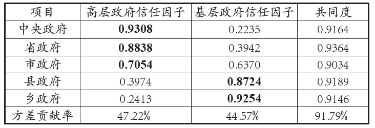 从表可见,央地信任差和信任级差,地方政府信任与基层政府信任、高层政府信任,中央政府信任与基层政府信任、高层政府信任均存在极强相关性,即政府信任具有较高的内在一致性。但央地和层级分别反映出五级政府信任数据结构分化的两个面向,同时具有差异性。