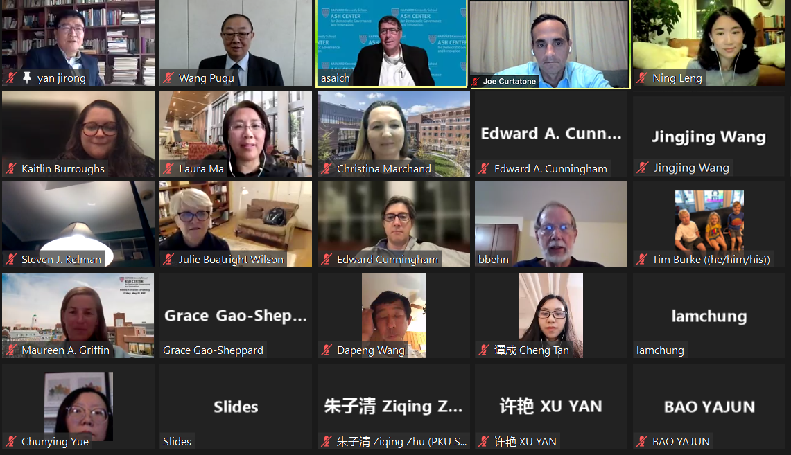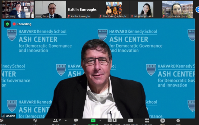 2021年10月22日,由北京大学国家治理研究院与哈佛大学肯尼迪政府学院阿什研究中心联合举办的“政府创新与高效能治理”国际学术研讨会在线上举行。来自北京大学、哈佛大学等多所高校的30余位专家学者参加此次会议。因双方的时区差异,本次研讨会分为两个时间段举行,北京时间上午8:00-10:00和晚上20:00-22:00。会议由哈佛大学肯尼迪政府学院阿什研究中心主任托尼·赛奇(Anthony Saich)教授和北京大学国家治理研究院院长王浦劬教授分别致开幕辞。